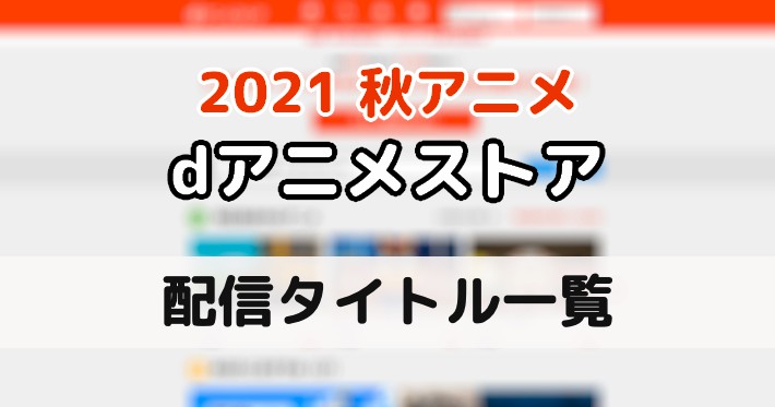 【dアニメストア】2021秋アニメ配信作品一覧 2022年01月05日 11時13分 AppMedia編集部 ▼『2022年夏アニメ』関連記事 夏アニメで放送予定の新作アニメを一覧でご紹介! 7月から放送予定の再放送アニメまとめ! 夏アニメの”覇権アニメ”アンケート! dアニメストアにて配信されたの2021年秋アニメ(10月〜12月)を一覧でご紹介!dアニメストアのみでしか観ることができないタイトルなども併せて紹介してますので、dアニメストアで2021年秋アニメを視聴する際にご活用ください。 『dアニメストア』配信タイトル一覧 フリーワード検索 ジャンルで検索配信曜日で検索 ▼選択する音楽/アイドルアクション/バトルSF/ファンタジーコメディ/ギャグTCG青春/学園ホラー/サスペンススポーツロボット恋愛/ラブコメ時代劇/歴史日常/ほのぼの▼選択する月火水木金土日 検索する 月曜日配信タイトルMUTEKING THE Dancing HERO初回:10月4日ワールドトリガー 3rdシーズン初回:10月11日逆転世界ノ電池少女初回:10月11日吸血鬼すぐ死ぬ初回:10月4日月とライカと吸血姫初回:10月4日カードファイト!! ヴァンガード overDress Season2初回:10月4日鬼滅の刃 遊郭編初回:12月6日▶︎火曜日配信タイトル白い砂のアクアトープ初回:7月13日プラチナエンド初回:10月12日ヴィジュアルプリズン初回:10月12日ビルディバイド -#000000(コードブラック)- 1st seazon初回:10月12日かぎなど初回:10月12日進化の実~知らないうちに勝ち組人生~初回:10月5日▶︎水曜日配信タイトル真の仲間じゃないと勇者のパーティーを追い出されたので、辺境でスローライフすることにしました初回:10月6日プラオレ!PRIDE OF ORANGE初回:10月6日▶︎木曜日配信タイトルSHAMAN KING初回:4月8日SCARLET NEXUS初回:7月1日サクガン初回:10月7日先輩がうざい後輩の話初回:10月14日半妖の夜叉姫 -戦国御伽草子- 弐の章初回:10月7日▶︎金曜日配信タイトル魔王イブロギアに身を捧げよ初回:10月1日SELECTION PROJECT初回:10月1日メガトン級ムサシ初回:10月1日キミとフィットボクシング Fit Boxing Animation初回:10月1日やくならマグカップも 二番窯初回:10月1日takt op.Destiny初回:10月8日異世界食堂2初回:10月8日▶︎土曜日配信タイトルドラゴンクエスト ダイの大冒険初回:10月3日ジャヒー様はくじけない!初回:7月31日ルパン三世 PART6初回:10月9日世界最高の暗殺者、異世界貴族に転生する初回:10月9日結城友奈は勇者である-大満開の章-初回:10月2日でーじミーツガール初回:10月2日86 -エイティシックス- 第2期初回:10月9日▶︎日曜日配信タイトルデジモンゴーストゲーム初回:10月10日無職転生 ~異世界行ったら本気だす~ 第2クール初回:10月3日見える子ちゃん初回:10月3日しょうたいむ! 〜歌のお姉さんだってしたい〜初回:10月3日▶︎ 2021秋アニメ一覧 2021年10月から12月にかけて放送された秋アニメ作品の一覧です。『無職転生』や『進撃の巨人』などの大人気作品からアニメオリジナル作品まで完全網羅! 関連記事 【GYAO!】2021秋アニメ配信作品一覧|ギャオ 09月28日 【テラサ】2021秋アニメ配信作品一覧|TELASA 09月28日 【ニコニコチャンネル】2021秋アニメ配信作品一覧 09月28日 【U-NEXT】2021秋アニメ配信作品一覧|ユーネクスト 09月28日 【ABEMA】2021秋アニメ配信作品一覧|アベマ 09月28日 【Hulu】2021秋アニメ配信作品一覧 09月28日 【アマプラ】2021秋アニメ配信作品一覧|Amazonプライム・ビデオ 09月28日 【ネトフリ】2021秋アニメ配信作品一覧|Netflix 09月28日 【FOD】2021秋アニメ配信作品一覧|フジテレビオンデマンド 09月28日 Twitterでこの記事をシェアする 特集 新着アニメ あなたへのおすすめ記事 【とあるシリーズ】おすすめの見る順番を徹底解説! 各ストーリーの概要も! 【物語シリーズ】おすすめの見る順番を徹底解説! 各ストーリーの概要も! アニメ『ソードアート・オンライン(SAO)』おすすめの見る順番を徹底解説! 各ストーリーの概要も! アニメ『Fate』シリーズのおすすめの見る順番を徹底解説! 【ハイキュー!!】おすすめの見る順番を徹底解説!各ストーリーの概要も! アニメ『ジョジョの奇妙な冒険』おすすめの見る順番と動画配信サービス 人気記事ランキング 1 【リゼロ】登場キャラクター一覧まとめ|Re:ゼロから始める異世界生活 2 【物語シリーズ】おすすめの見る順番を徹底解説! 各ストーリーの概要も! 3 『サマータイムレンダ』うしおは死亡した?潮の記憶や影などについて徹底解説|ネタバレあり 4 【ひぐらしのなく頃に 業】うみねこの「ラムダデルタ」登場?沙都子との関係性は?キャラクター情報|編集部コラム 5 【まどマギ アニメ】登場魔女一覧|魔法少女まどか☆マギカ 最新アニメニュース 2022年09月18日 22時00分 『ラブライブ!スーパースター!! 2期』第9話あらすじと場面カットを公開! 2022年09月18日 18時30分 声優・アニソンアーティストが月替わりで登場!2022年10月の月間パーソナリティは声優・アーティスト小野大輔!TOKYO FM『Lantis EXPO』毎週土曜24:00~24:30放送 2022年09月18日 00時00分 『リコリス・リコイル』第12話あらすじと場面カットを公開! 2022年09月17日 18時30分 3連休はこれで決まり!『