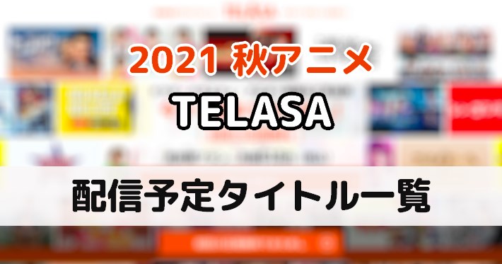 【テラサ】2021秋アニメ配信作品一覧|TELASA 2022年01月05日 11時13分 AppMedia編集部 ▼『2022年夏アニメ』関連記事 夏アニメで放送予定の新作アニメを一覧でご紹介! 7月から放送予定の再放送アニメまとめ! 夏アニメの”覇権アニメ”アンケート! TELASA(テラサ)にて配信された2021年秋アニメ(10月〜12月)を一覧でご紹介!TELASAのみでしか観ることができないタイトルなども併せて紹介してますので、TELASAで2021年秋アニメを視聴する際にご活用ください。 『TELASA』配信タイトル一覧 フリーワード検索 ジャンルで検索配信曜日で検索 ▼選択する音楽/アイドルアクション/バトルコメディ/ギャグSF/ファンタジーホラー/サスペンスTCG青春/学園スポーツ日常/ほのぼの時代劇/歴史恋愛/ラブコメロボット▼選択する月火水木金土日 検索する 月曜日配信タイトルMUTEKING THE Dancing HERO初回:10月4日ワールドトリガー 3rdシーズン初回:10月11日見える子ちゃん初回:10月11日月とライカと吸血姫初回:10月11日逆転世界ノ電池少女初回:10月18日鬼滅の刃 遊郭編初回:12月6日▶︎火曜日配信タイトルプラチナエンド初回:10月12日進化の実~知らないうちに勝ち組人生~初回:10月12日ヴィジュアルプリズン初回:10月12日ビルディバイド -#000000(コードブラック)- 1st seazon初回:10月12日吸血鬼すぐ死ぬ初回:10月5日▶︎水曜日配信タイトル白い砂のアクアトープ初回:7月14日プラオレ!PRIDE OF ORANGE初回:10月6日世界最高の暗殺者、異世界貴族に転生する初回:10月13日やくならマグカップも 二番窯初回:10月6日▶︎木曜日配信タイトルジャヒー様はくじけない!初回:8月5日半妖の夜叉姫 -戦国御伽草子- 弐の章初回:10月7日▶︎金曜日配信タイトルSCARLET NEXUS初回:7月2日SELECTION PROJECT初回:10月8日メガトン級ムサシ初回:10月1日キミとフィットボクシング Fit Boxing Animation初回:10月1日takt op.Destiny初回:10月8日▶︎土曜日配信タイトルドラゴンクエスト ダイの大冒険初回:10月3日ルパン三世 PART6初回:10月9日先輩がうざい後輩の話初回:10月16日最果てのパラディン初回:10月16日結城友奈は勇者である-大満開の章-初回:10月2日無職転生 ~異世界行ったら本気だす~ 第2クール初回:10月9日異世界食堂2初回:10月9日86 -エイティシックス- 第2期初回:10月9日▶︎日曜日配信タイトルサクガン初回:10月10日▶︎ 2021秋アニメ一覧 2021年10月から12月にかけて放送された秋アニメ作品の一覧です。『無職転生』や『進撃の巨人』などの大人気作品からアニメオリジナル作品まで完全網羅! 関連記事 【GYAO!】2021秋アニメ配信作品一覧|ギャオ 09月28日 【dアニメストア】2021秋アニメ配信作品一覧 09月28日 【ニコニコチャンネル】2021秋アニメ配信作品一覧 09月28日 【U-NEXT】2021秋アニメ配信作品一覧|ユーネクスト 09月28日 【ABEMA】2021秋アニメ配信作品一覧|アベマ 09月28日 【Hulu】2021秋アニメ配信作品一覧 09月28日 【アマプラ】2021秋アニメ配信作品一覧|Amazonプライム・ビデオ 09月28日 【ネトフリ】2021秋アニメ配信作品一覧|Netflix 09月28日 【FOD】2021秋アニメ配信作品一覧|フジテレビオンデマンド 09月28日 Twitterでこの記事をシェアする 特集 新着アニメ あなたへのおすすめ記事 【とあるシリーズ】おすすめの見る順番を徹底解説! 各ストーリーの概要も! 【物語シリーズ】おすすめの見る順番を徹底解説! 各ストーリーの概要も! アニメ『ソードアート・オンライン(SAO)』おすすめの見る順番を徹底解説! 各ストーリーの概要も! アニメ『Fate』シリーズのおすすめの見る順番を徹底解説! 【ハイキュー!!】おすすめの見る順番を徹底解説!各ストーリーの概要も! アニメ『ジョジョの奇妙な冒険』おすすめの見る順番と動画配信サービス 人気記事ランキング 1 【リゼロ】登場キャラクター一覧まとめ|Re:ゼロから始める異世界生活 2 【物語シリーズ】おすすめの見る順番を徹底解説! 各ストーリーの概要も! 3 『サマータイムレンダ』うしおは死亡した?潮の記憶や影などについて徹底解説|ネタバレあり 4 【ひぐらしのなく頃に 業】うみねこの「ラムダデルタ」登場?沙都子との関係性は?キャラクター情報|編集部コラム 5 【まどマギ アニメ】登場魔女一覧|魔法少女まどか☆マギカ 最新アニメニュース 2022年09月18日 22時00分 『ラブライブ!スーパースター!! 2期』第9話あらすじと場面カットを公開! 2022年09月18日 18時30分 声優・アニソンアーティストが月替わりで登場!2022年10月の月間パーソナリティは声優・アーティスト小野大輔!TOKYO FM『Lantis EXPO』毎週土曜24:00~24:30放送 2022年09月18日 00時00分 『リコリス・リコイル』第12話あらすじと場面カットを公開! 2022年09月17日 18時30分 3連休はこれで決まり!『女神のカフェテラス』アニメ化記念!『女神のカフェテラス』他、「瀬尾公治作品」大量無料公開中!! 2022年09月17日 18時15分 豪華声優が最大9役演じ分け!?『高校生家族』お泊り会編ボイスコミックを公開! 最新ニュースをもっと見る
