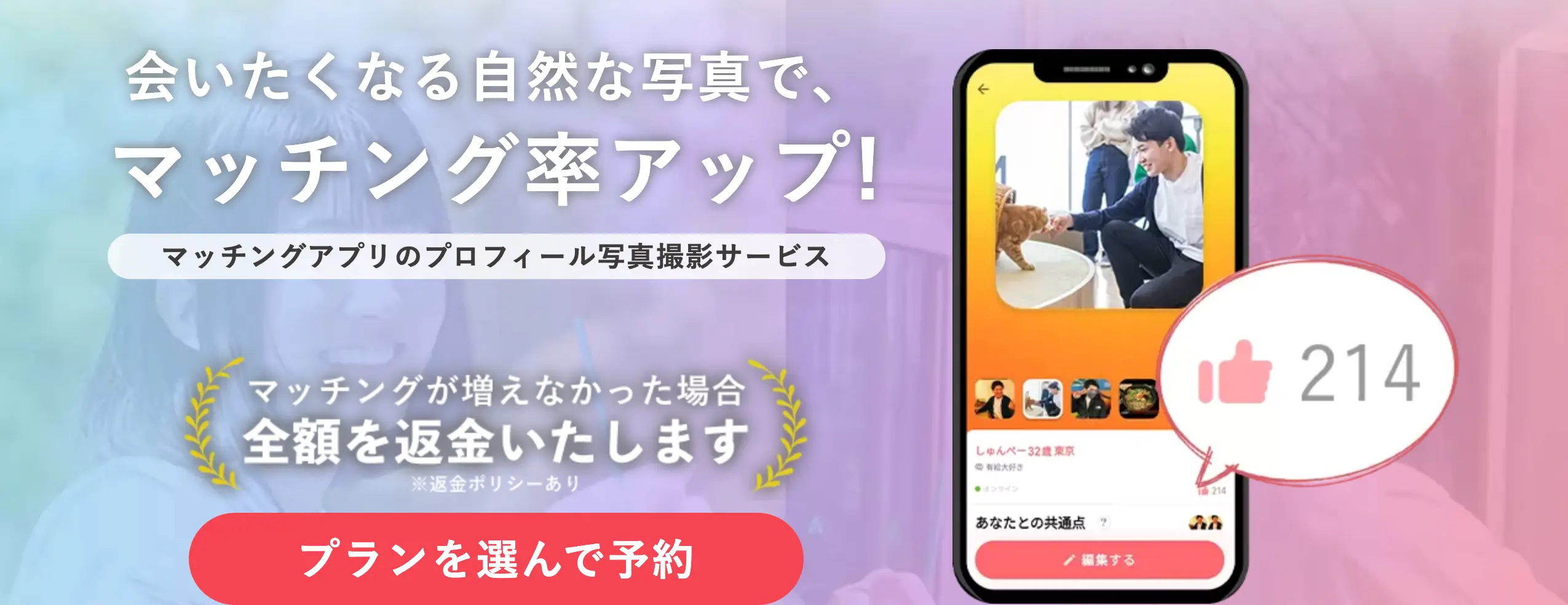 「マッチングアプリに登録する写真がない」「登録したけど全然マッチングしない」そんなお悩みを解決し、あなたの恋活・婚活を応援いたします。