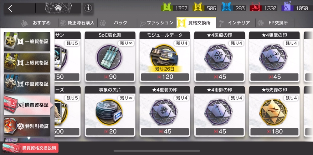 キャラを入手したときに一緒に入手できる一般昇格証は、購買部でアイテムと交換することができ、交換のラインナップは毎月1日に更新されるので忘れずに交換しておこう。