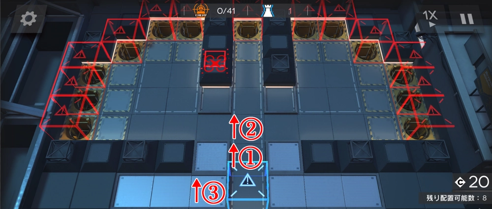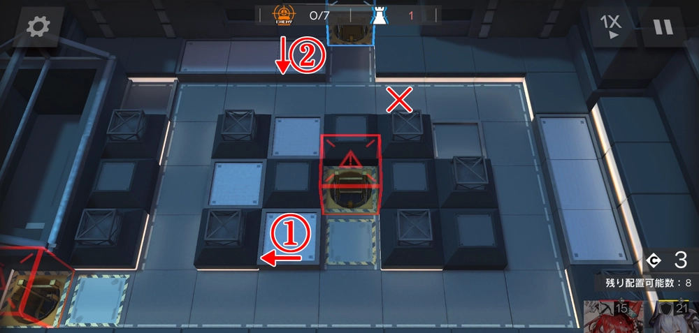 - エンテレケイア配置→レミュアン配置(スキルは即発動でOK)→アドナキエル配置→コスト溜まったら右下の装置起動でクリア