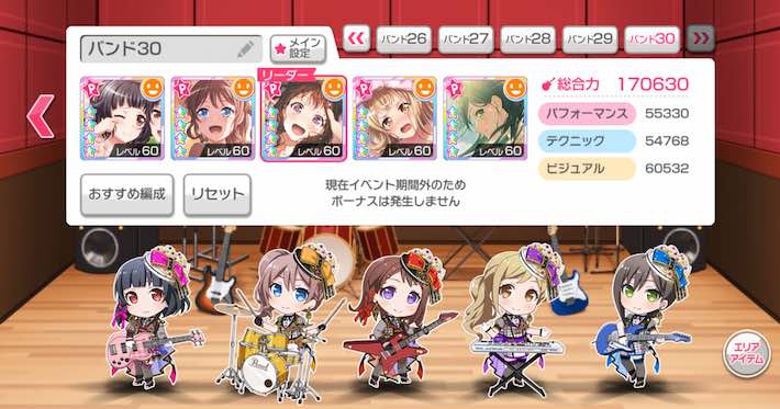 そのため、カードや編成や認識に誤りがあるバンド編成があるかもしれませんので、お気づきの点がありましたらコメントでお知らせ頂けると幸いです。
