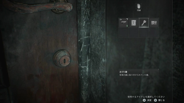 写真の裏を調べて古びた鍵を入手する