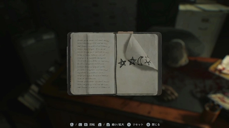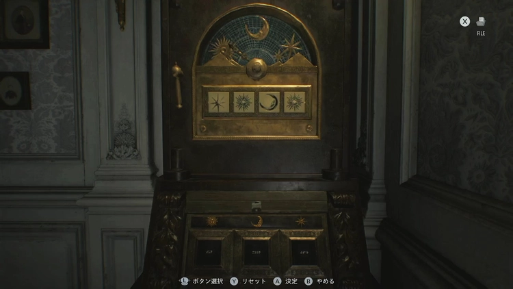 「星」「太陽」「月」「太陽」の順に揃えると扉が開き、太陽のクォーツと革張りの手帳を入手できる。
