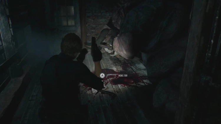道なりに進み、屋根裏で巨大な敵の前にあるショットガンを入手しよう。