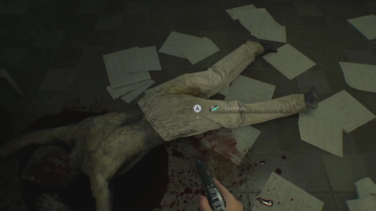 死体に近づくと巨大な敵(チャンク)が出現する。リストタグが入手できなかった場合は、1階の待合室まで行き、敵が別方向へ行ったタイミングで2階に戻って入手しよう。