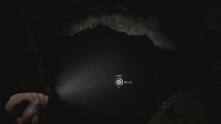 巨大な敵が空けた穴に飛び込むと操作キャラがレオンへと変わる。