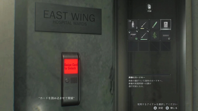 プレイルームで入手した病棟のカードキーを使用して病棟を進もう。