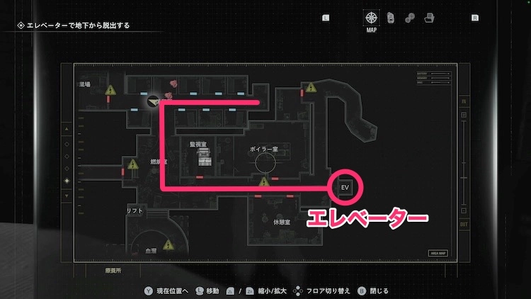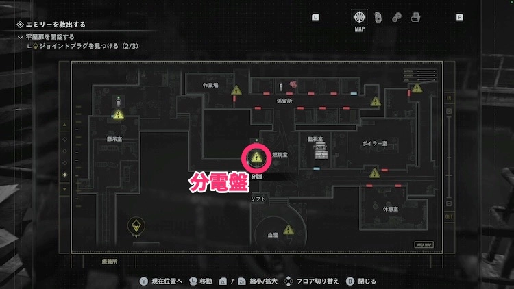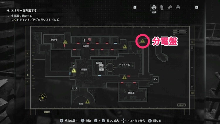 まずは地下入り口付近の配電盤を目指そう。