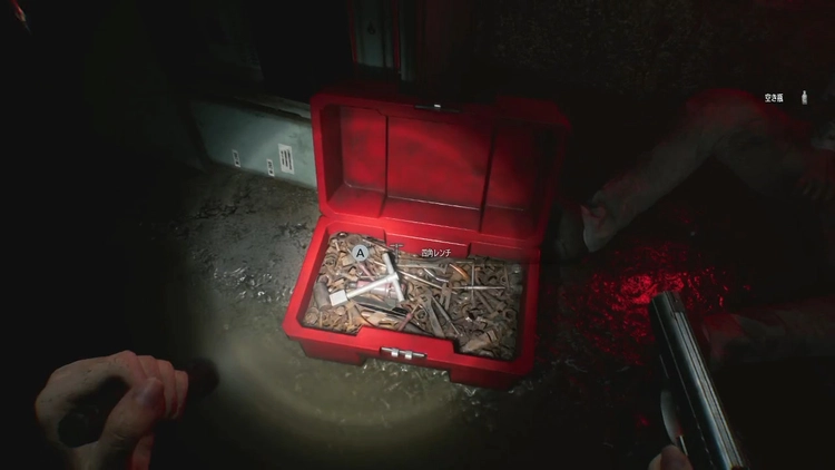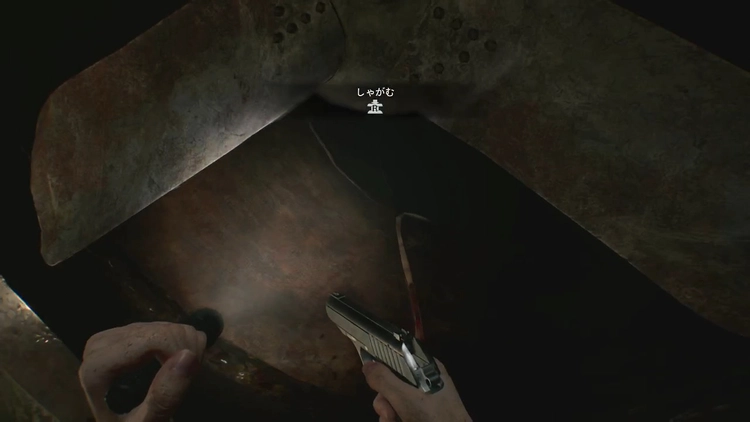 ハンドルを回すと貯水槽の血が抜けて下に降りられるようになるため、ハシゴで下に降りてアイテムを回収しよう。