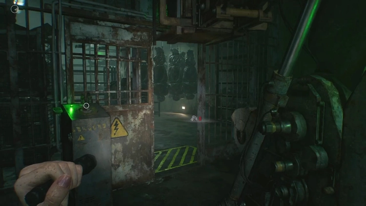 懸吊室で回転している死体袋に合わせて右奥へと進もう。1つ奥へ進むと障害物があるので、動かすことで手前に戻る道を確保できる。