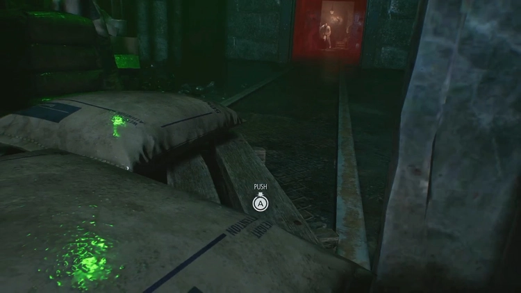 地下入り口付近の配電盤にプラグを入れたら中(ボイラー室)に入り、道を塞いでいる木箱を押してどかそう。