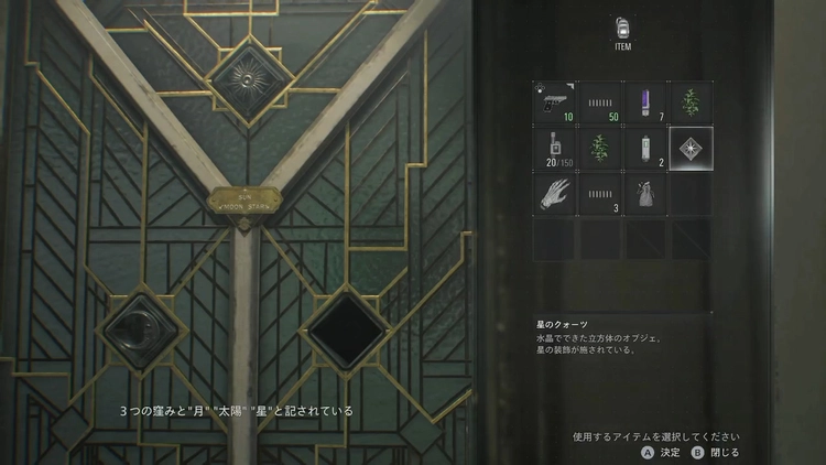 エントランスまで戻ってクォーツを3つはめると、扉が開いて中庭に行けるようになる。