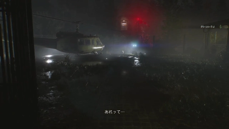 中庭の階段を降りていき、噴水まで来たら西側にあるヘリポートへ向かおう。イベント後にグレース1人で探索が可能に。