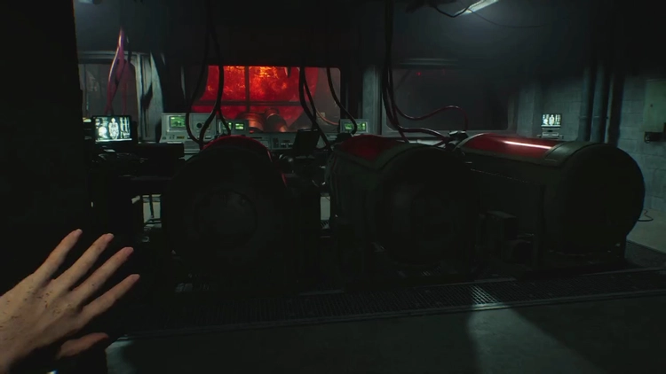 - 地下研究所の奥の実験監視室に向かう