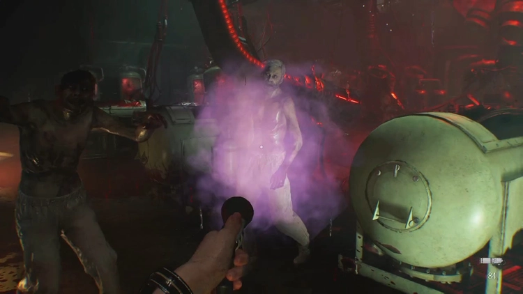 大抽出室には大量のゾンビがいるため、壁に設置されている破血噴射器を活用して進もう。