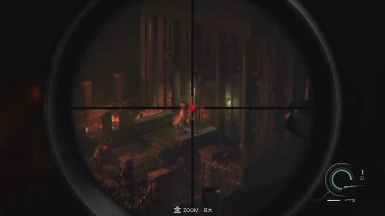 スナイパーライフルでグレースたちに近づくゾンビを倒そう。