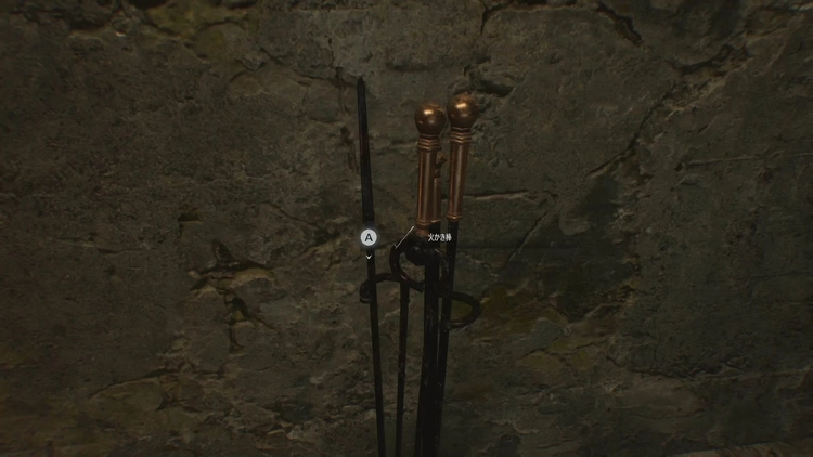 立てかけてある火かき棒をしよう。火かき棒を入手したら柵の鍵を開けて礼拝堂へ戻ろう。