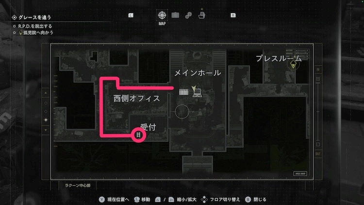 道なりに進んでラクーン警察署に向かう - メインホールから西側オフィスに入る