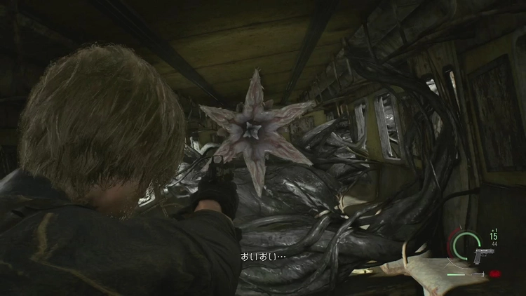 列車の中を進んでいると植物の敵が出現。花が開いた時に攻撃して倒そう。