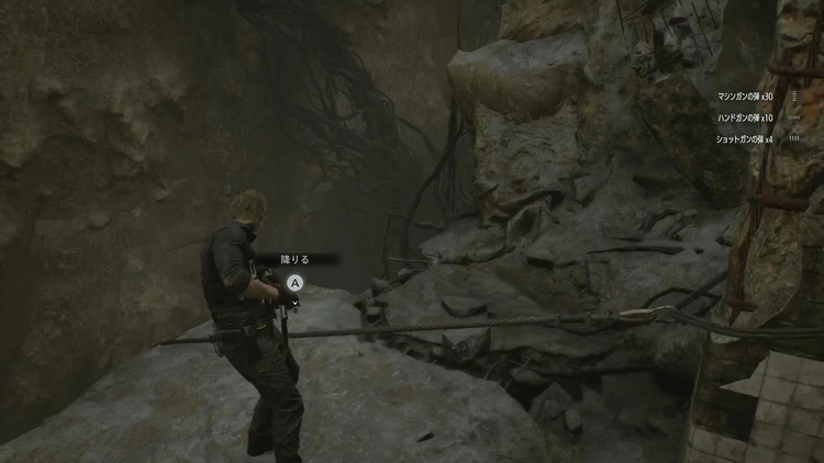 坂を滑り降り、電車の中を進んでいくとロープがある。ロープで大穴へと降りて、大穴の奥へと進もう。