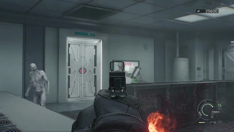 梯子を登って裏口に入る - B.O.W.ストレージ-11の制御盤を調べる