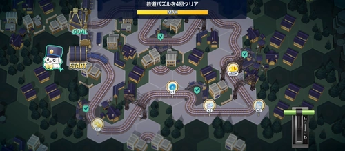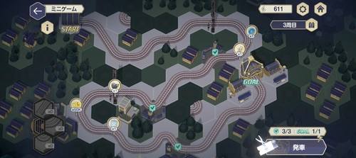 すべてのマスを列車が通過するように配置すると、必要なレールが足りなくなってしまう可能性があるので、最短距離で育成素材と中継地点を経由しながらゴールを目指そう。