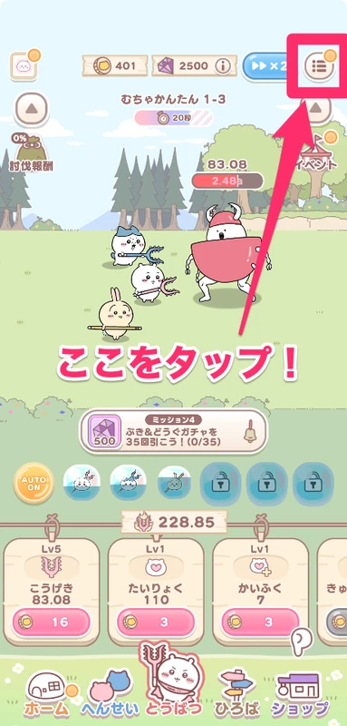 ガチャリソースをかき集めたら、ガチャをできるだけ引こう。基本的にはちいかわたちの戦力アップに繋がる「ぶき&どうぐガチャ」を引くのがおすすめだ。