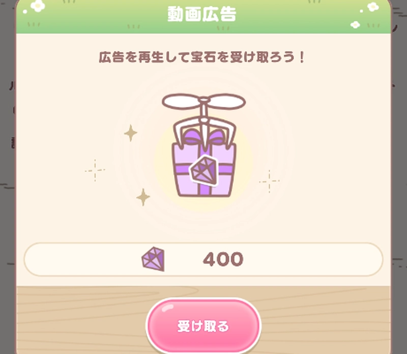 広告を視聴する必要があるが、宝石400個をゲットできるので時々画面をチェックしよう。