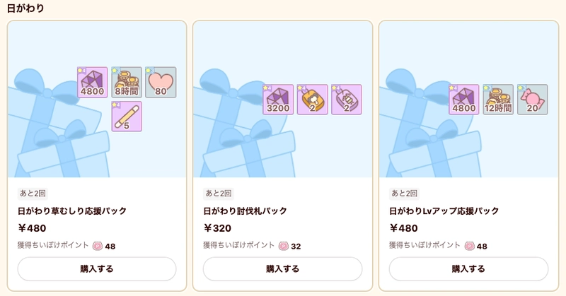 ちいぽけポイントは様々なアイテムと交換できる課金者限定のおまけ要素なので、課金を検討している方は可能な限りWEBストアを利用しよう。