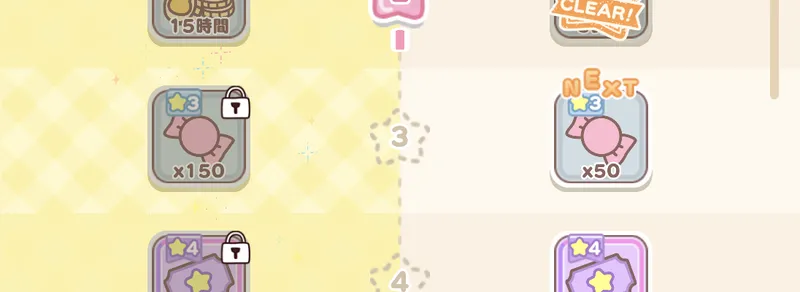 小さいアメはキャラのレベルを上げるのに使用する。上で紹介したようにいくつか入手方法はあるが、どれも豊富に入手できるわけではないので、レベル上げは計画的に行おう。