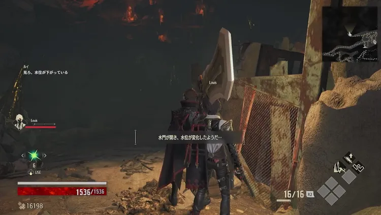 道中にあるレバーを引くと、水位が下がって探索や戦闘がかなり楽になる。