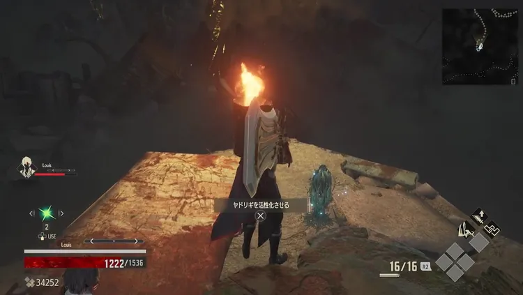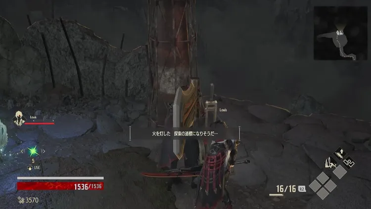 - ヤドリギ(迷いの丘陵)付近でイベント・高台のレバーを引いて炎を灯しながら進む