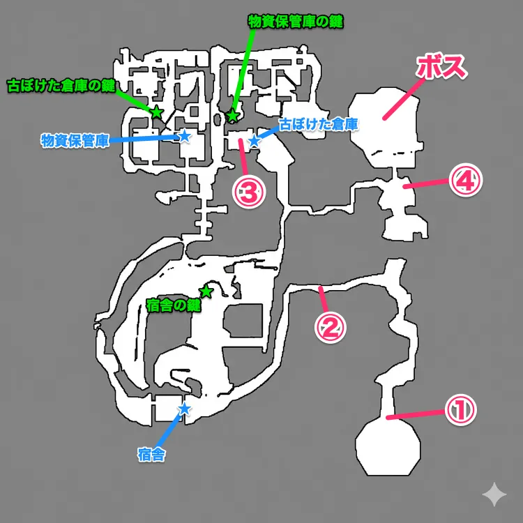 軍事倉庫から古ぼけた倉庫の鍵までのおすすめルート