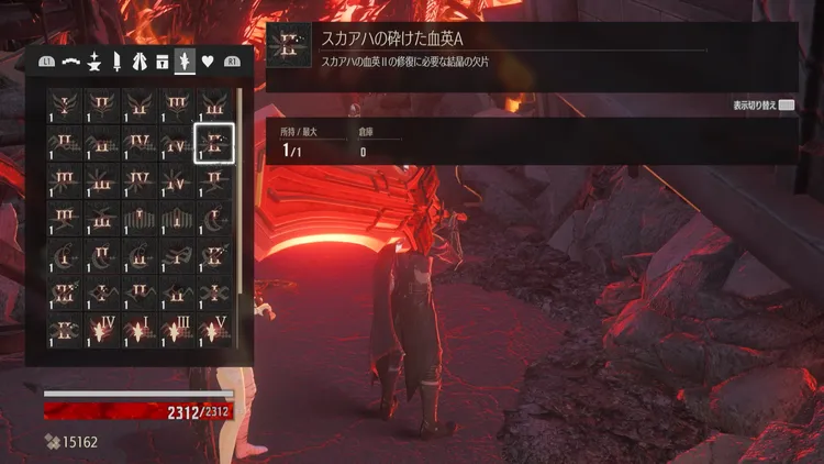 火の降る街で入手できるスカアハの砕けた血英(A・B・C・D・E)は、エンディング分岐に関わる重要アイテムだ。