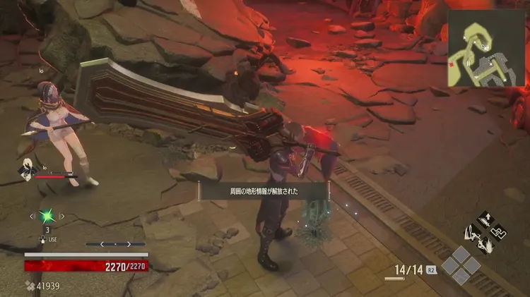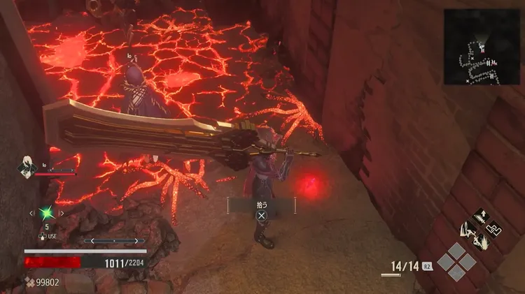 - 北の方角に進んで階段を上がる道中にスカアハの砕けた血英A