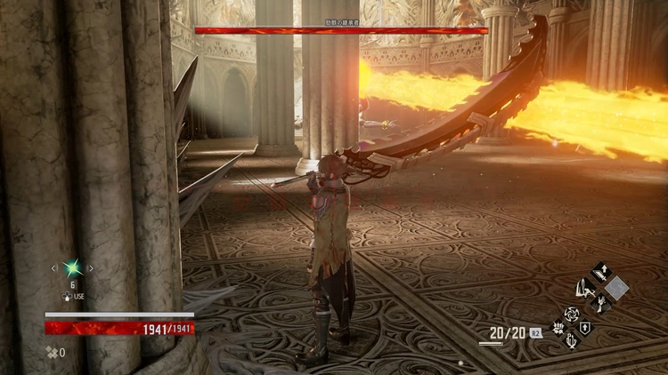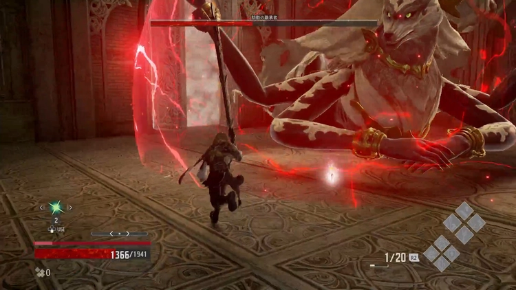 2戦目のボスはワープ後にバリアを纏っていて、バリアがある間はダメージが0になる。そのため、通常攻撃でバリアを割ってから錬血を使用してダメージを稼ごう。