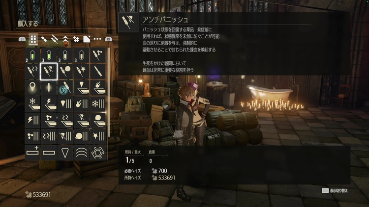 バディがバニッシュになってギフトヒールをもらえない場合を考慮すると、錬血のバニッシュクリアも装備しておくのがよい。