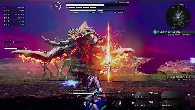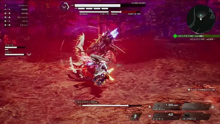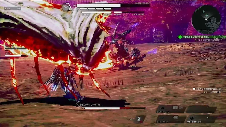 ラピスラクリマRT:αは遠距離攻撃を基本的に行わずに、巨体を活かして突っ込んでくる攻撃をメインとしている。