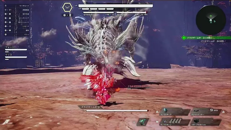 グラオザームαと同様に、胸部から大型のビーム攻撃を通常時から行う。大型ビーム後の腹部が弱点なのは変わらないため、積極的に弱点を狙おう。
