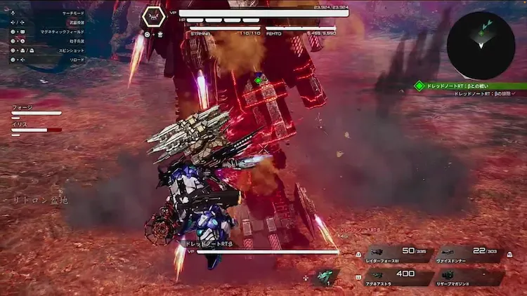 戦闘を行なっている最中に、ドレッドノートRT:βが地面に潜ってしまってもミニマップを確認していると、地上に出てくる際の位置が事前にわかるようになっている。