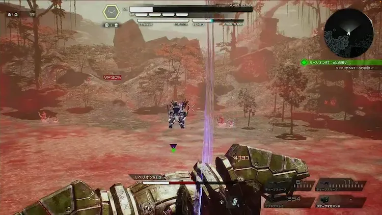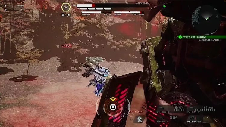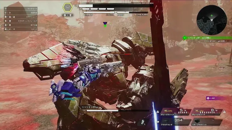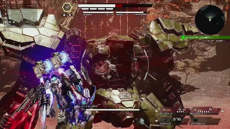 リベリオンRT:αの肩にホーミング性能の高いミサイルが追加されており、距離に関係なく発射してくるため、空に向かって上体をのけぞらせたら警戒しよう。