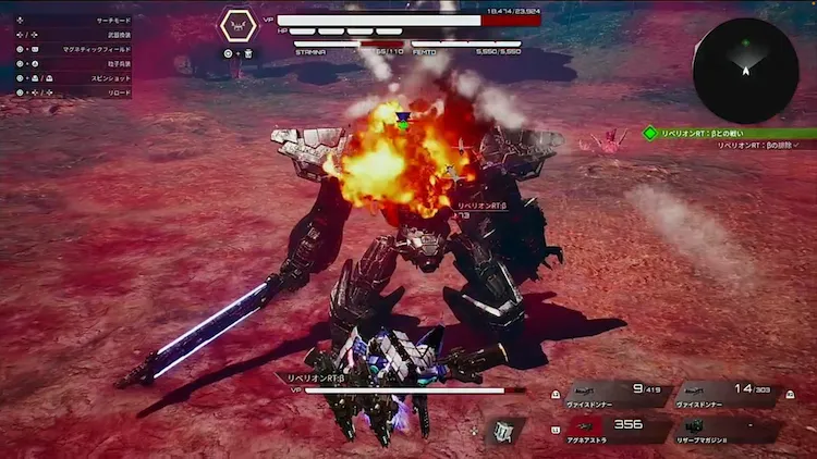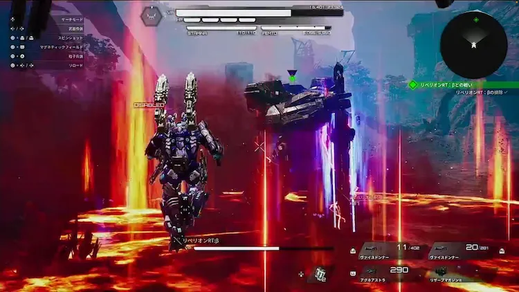 リベリオンRT:βの肩にホーミング性能の高いミサイルが追加されており、距離に関係なく発射してくるため、空に向かって上体をのけぞらせたら警戒しよう。