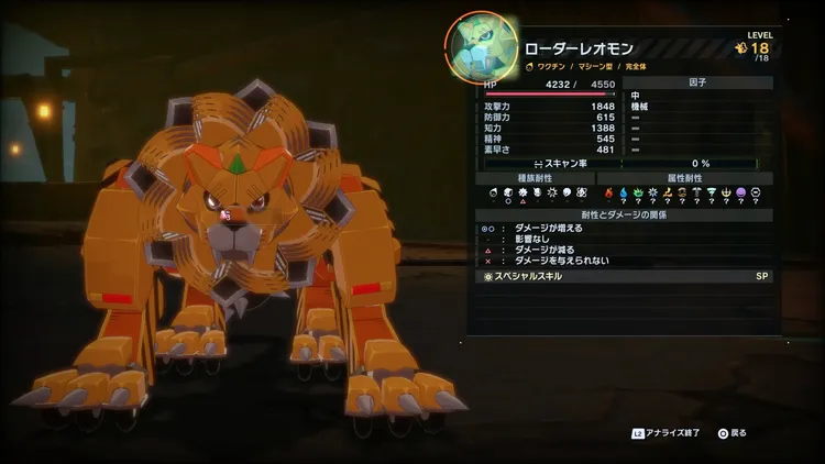 ![]() | 完全体 マシーン型 ワクチン 豪胆 中 機械 ステータス Lv 18 HP 4550 攻撃 1848 防御 615 知力 1388 精神 545 素早さ 602 種族耐性 - ◯ △ - - - - 属性耐性 - - ◯ - ◯ △ △ - - - - |