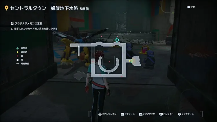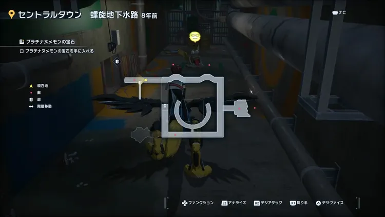 セントラルタウン 螺旋地下水路内で「プラチナヌメモン」を倒してプラチナヌメモンの宝石を入手しよう。