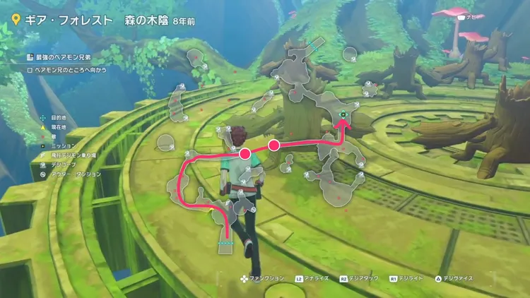 ベアモン兄は、森の木陰のマップ右側にいる。移動ルートは上記の画像の通り。