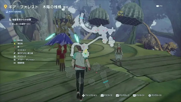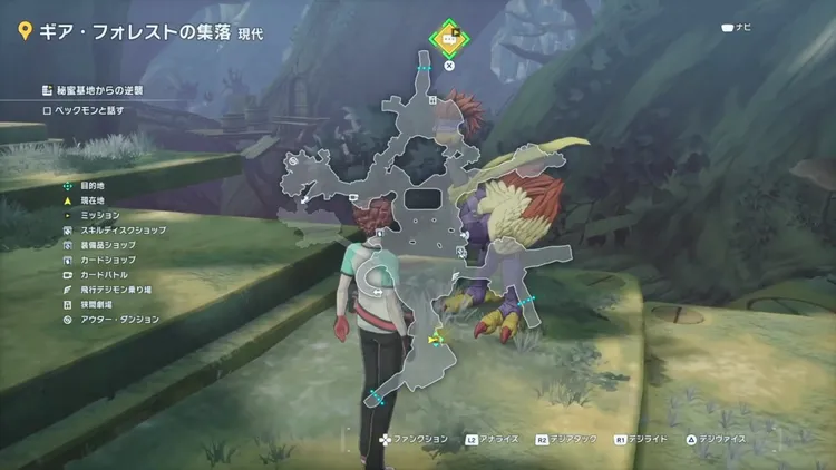 ペックモンは、ギア・フォレストの集落 現代のマップ下側にいる。