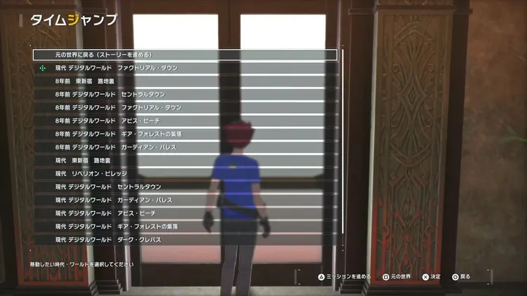「ホストからの支援」をクリアすると、タイムジャンプが使用可能になる。タイムジャンプを使用すると、様々な時代やワールドに瞬間移動することが可能だ。