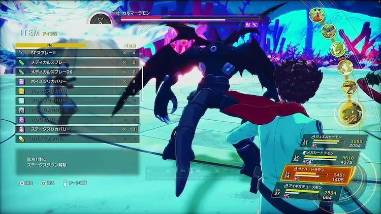 カルマーラモンは戦闘中に命中率ダウンのデバフ効果を味方全体に与えてくることがある。