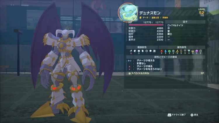 ![]() | 究極体 聖騎士型 データ 天啓 ロイヤルナイツ 中 聖 騎士 ステータス Lv 52 HP 12770 攻撃 4986 防御 2209 知力 4366 精神 2209 素早さ 2330 種族耐性 △ - ◯ - - - - 属性耐性 - - ◯ △ - ◯ - △ - - - |